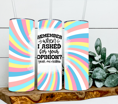 Remember when I asked for your opinion yeah me either